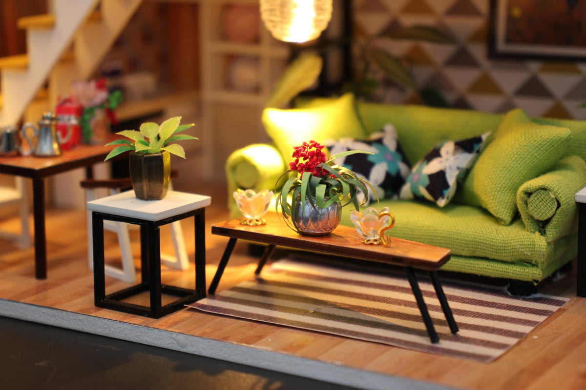 Byggesættet består af mange små dele, der samles som et puslespil – en afslappende og tilfredsstillende proces for alle, der elsker DIY og kreativ fordybelse. Det færdige resultat bliver et smukt miniature dukkehus i skandinavisk stil, perfekt som dekoration i hjemmet eller som gave til en kreativ sjæl.
